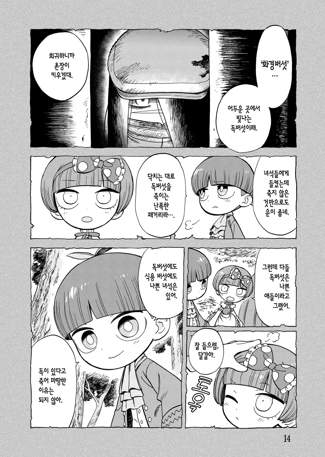 버섯 요정들이 사는 마을. 거긴 정말 즐겁고 평화로운 곳. 그런데 어느 날, 한 독버섯이 찾아와 마을 사람들을 전부 죽여버렸다. 혼자 살아남은 버섯 소녀는 복수를 가슴에 품고 울창한 숲을 헤쳐나가는 여행을 나서게 되었다.