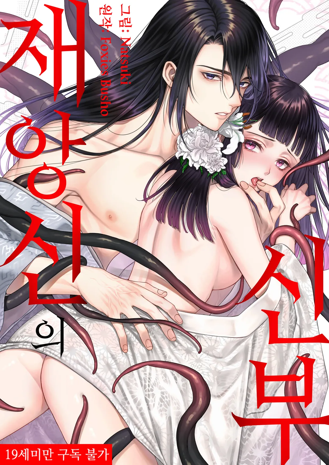 마을에서 저주받은 아이로 태어나는 바람에 어머니는 마을 규칙에 따라 죽고, 이후 언니들에게 학대받으며 살던 벙어리 시노부. 시노부는 가문을 일으켜 세우려는 아버지의 명령을 받아 명문가문의 저주받은 당주의 신부…즉 제물이 되고 만다. 우글우글한 촉수들이 가득한 방에서 첫날밤을 기다리던 시노부에게 재앙신 타츠히코가 오게 되고, 그날 밤 둘은 사랑을 나누게 되는데. ⓒNatsuki/Foxies Busho/libre
