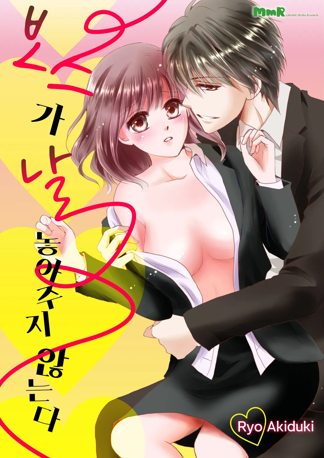 야한 그 목소리도, 이 몸도 이제부터 전부 다 내 거야. 비서로 일하고 있는 미즈키의 고민은 독점욕이 강한 사장 쿠로사키 때문! 어느 날, 미즈키는 갑작스런 엄마의 입원으로 휴가를 냈는데 착오로 퇴직 처리가 되어있고, 이후 쿠로사키의 속박은 더욱 강해지는데…. ⓒRyo Akiduki/©Mobile Media Research
