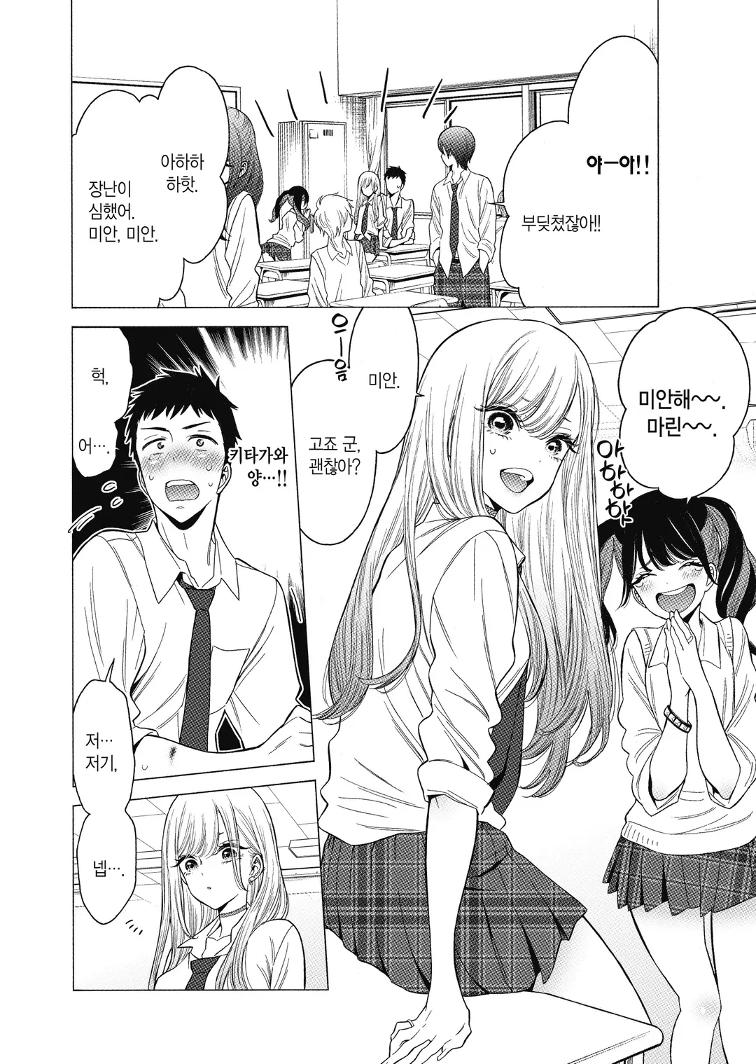 늘 친구들 사이에서 중심에 있는 인기 많은 미소녀 키타가와 마린. 반 친구인 고죠 와카나는 그녀를 ‘다른 세상에서 사는 인간’이라 생각했다. 장래에 히나 인형을 만드는 장인이 되고 싶은 와카나. 그런 그가 방과 후 피복실습실에서 작업을 하고 있는데,