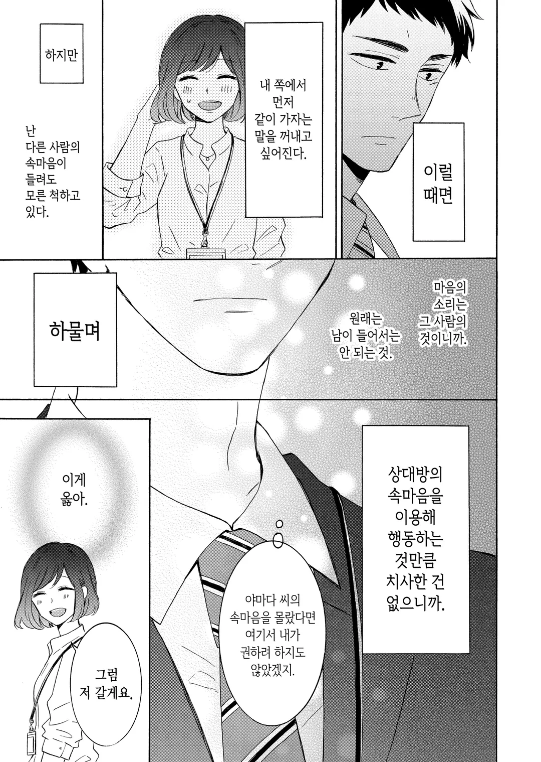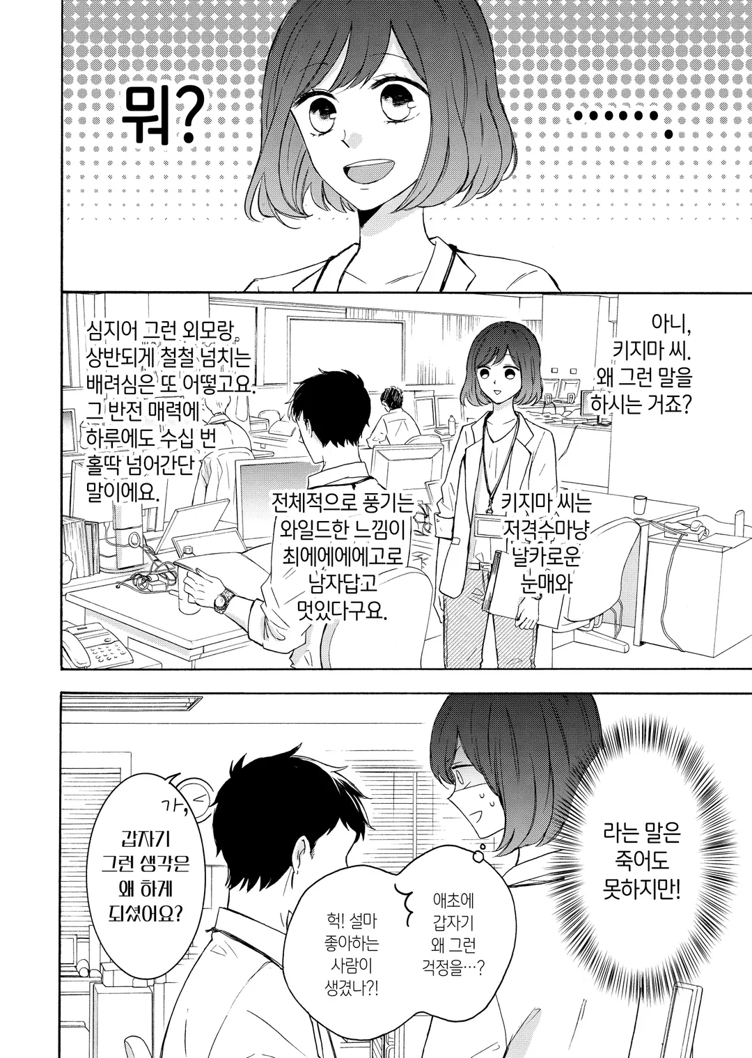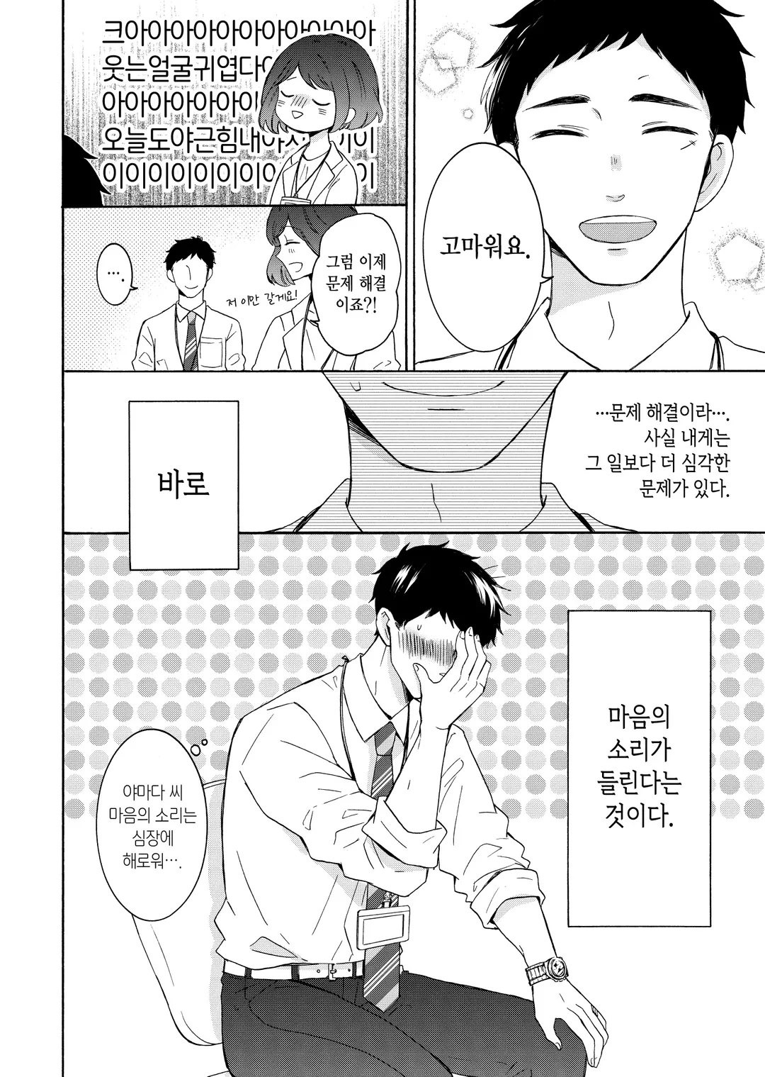 마음의 소리가 들리는 키지마 씨와, 마음의 소리가 시끌벅적 요란한 야마다 씨. 자신을 향한 야마다 씨의 열렬한 연심이 들리는 게 일상인 회사 생활 속에서, 어느새 그녀의 밝고 따뜻한 인품에 키지마 씨도 점점 마음이 끌리기 시작하는데…….