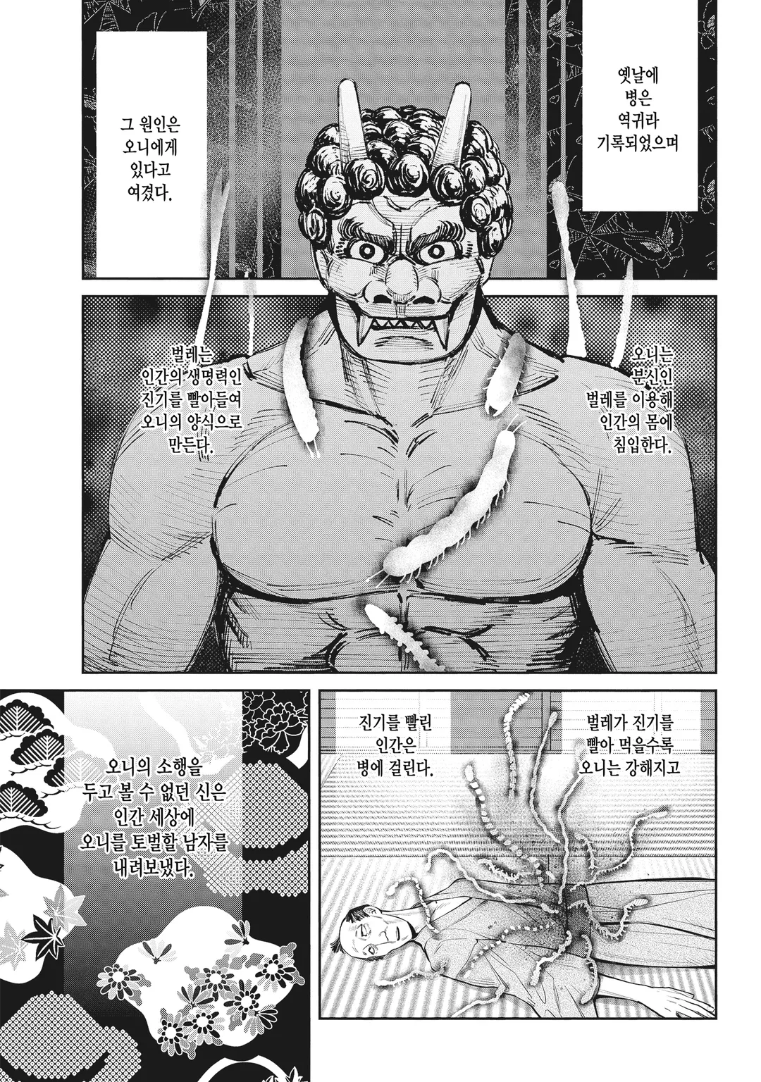 에도시대, ‘벌레’라 불리는 자신의 분신을 이용해, 인간에게 들러붙어 생명력을 뺏어 양식으로 삼는 ‘오니’를 토벌하도록
