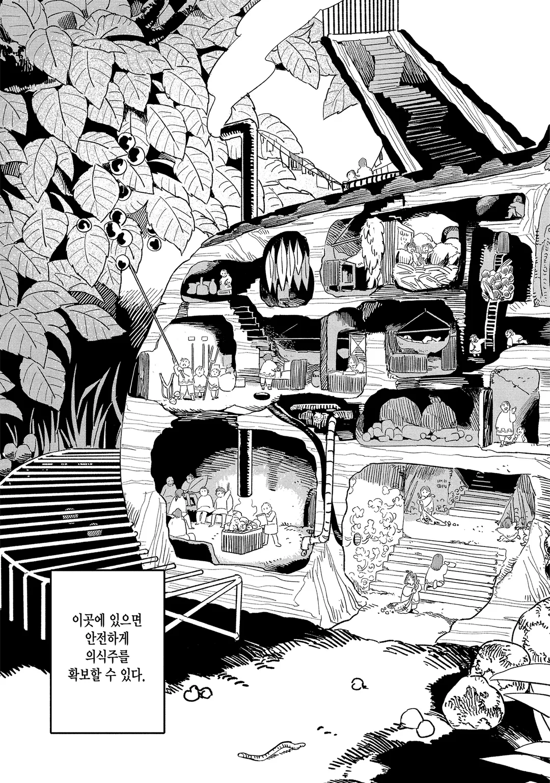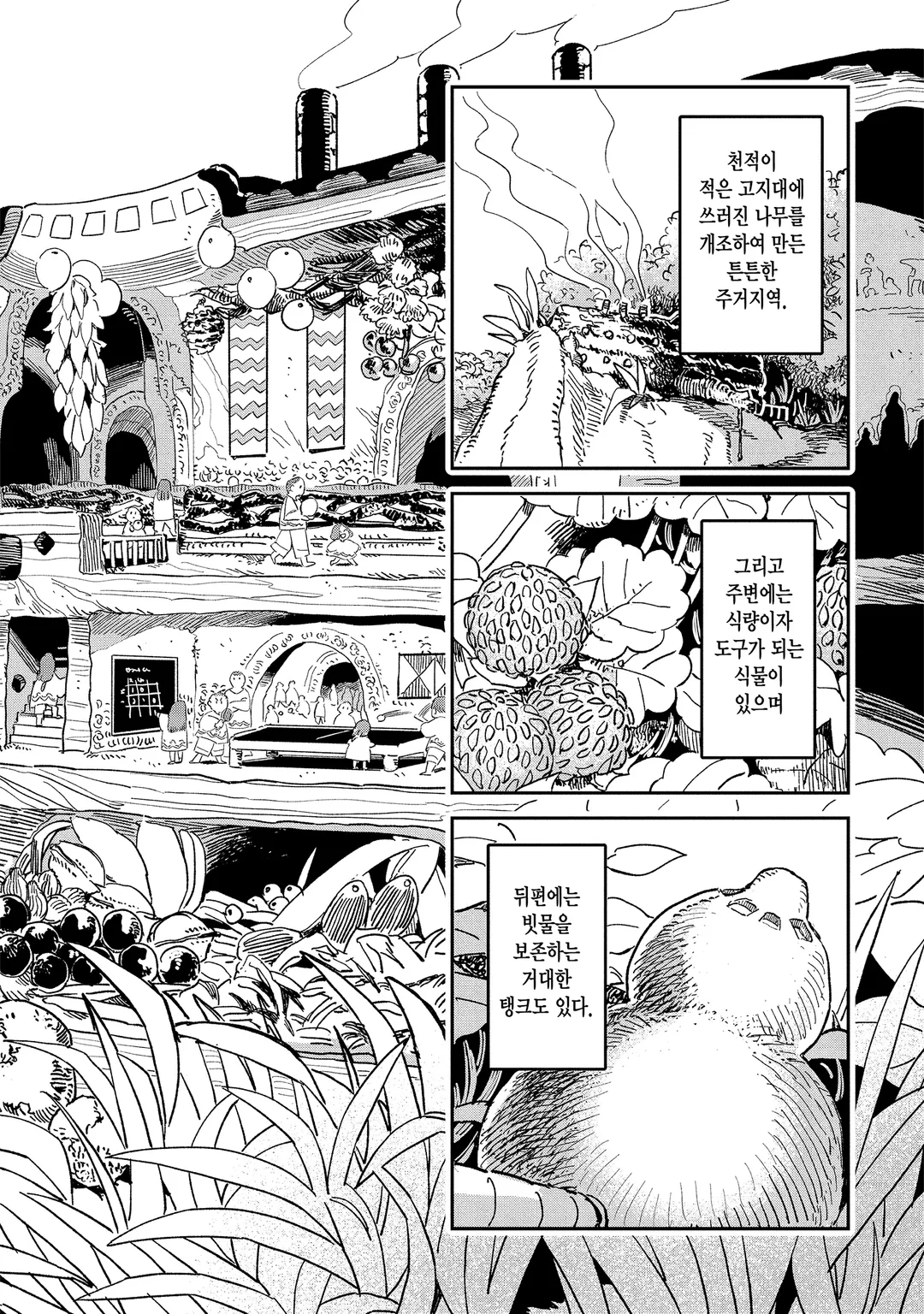 난쟁이들이 살고 있는 숲속의 부락.