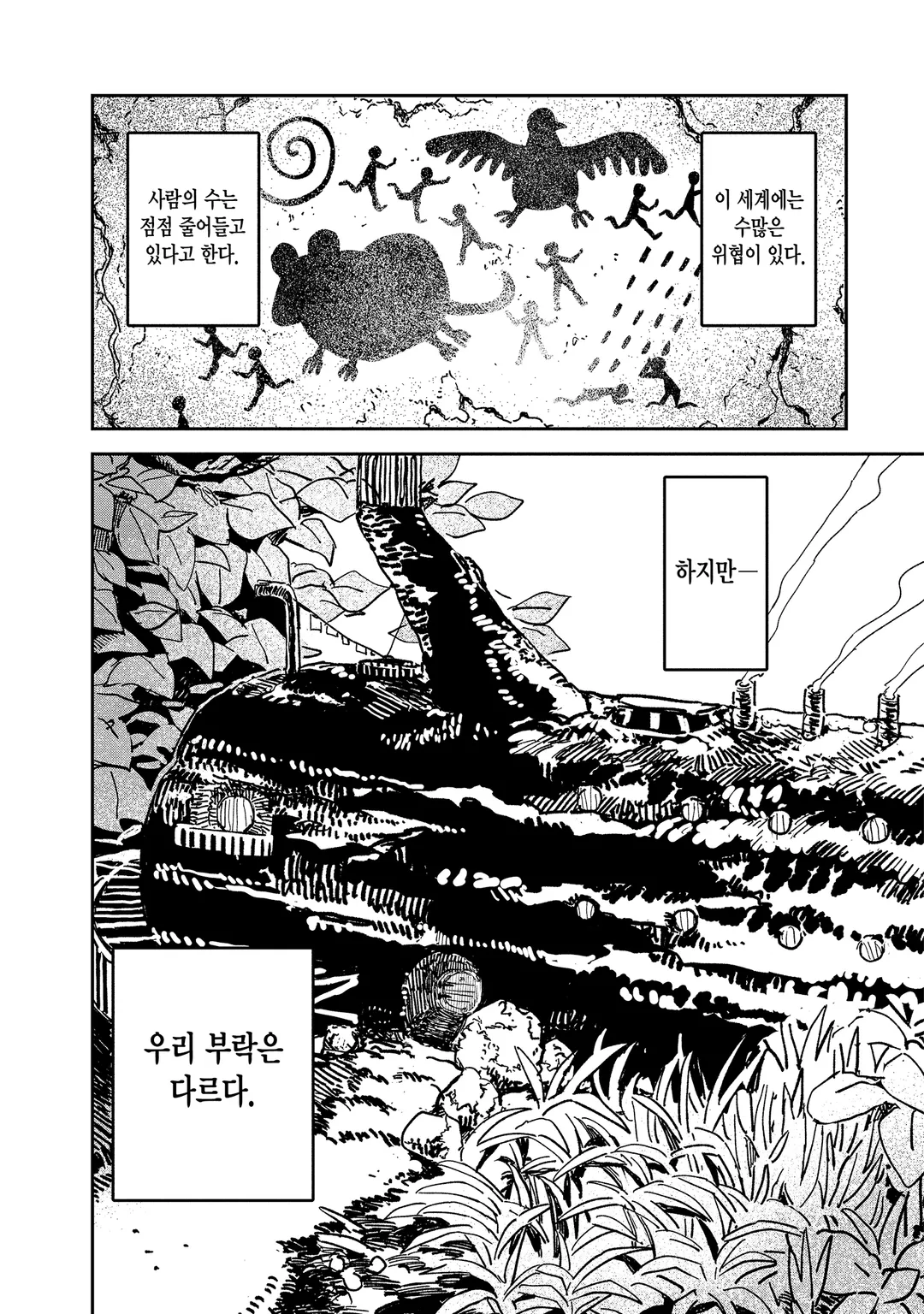 부락에서 멀리 떨어진 곳에,
